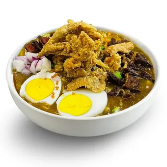 A traditional Filipino chicken noodle soup, the broth for this particular soup vision is thicker.