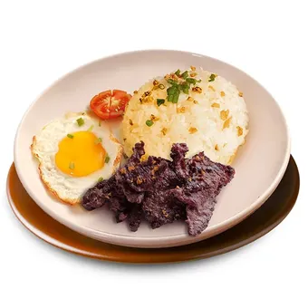 Start strong with a savory tapsilog - tender tapa, garlic rice and sunny side egg - then cool down with a colorful, icy halo-halo.